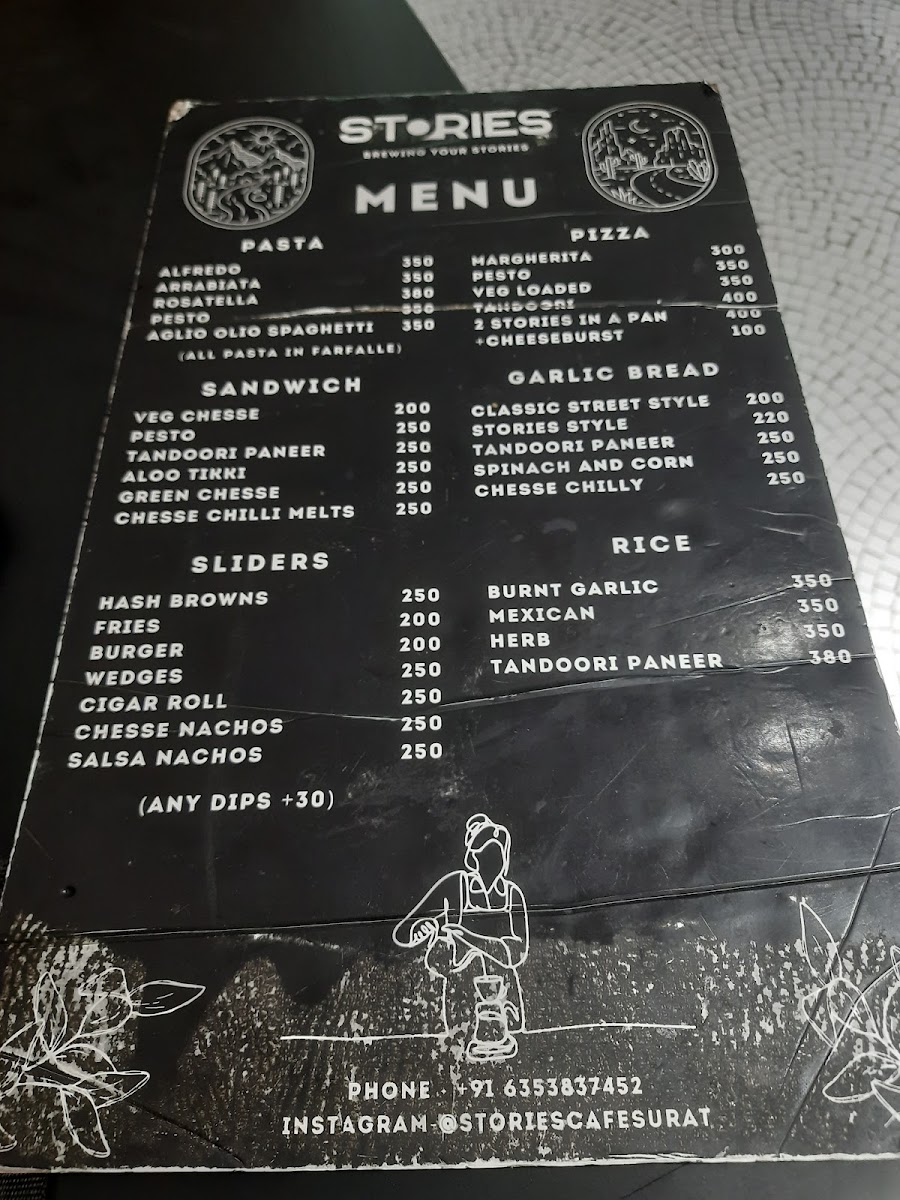 Welcome to Stories Cafe, a cozy haven nestled beside the Surat Gymkhana and tucked away behind the bustling Iscon Mall in Piplod, Surat. This charming cafe invites you to experience a delightful fusion of flavors in a tranquil setting, ideal for savoring aromatic brews and delectable bites.